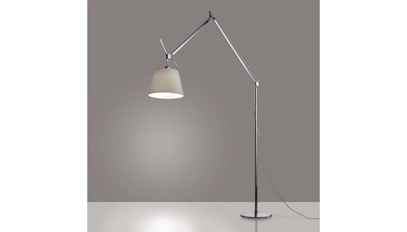 An extension to the iconic Tolomeo family, Tolomeo Mega features the same arm balancing system as the Tolomeo table lamp combined with a selection of parchment or fabric shades, creating its own sub-family. Tolomeo mega is available in table clamp, floor, wall and suspension versions.. Manufactured by Artemide.