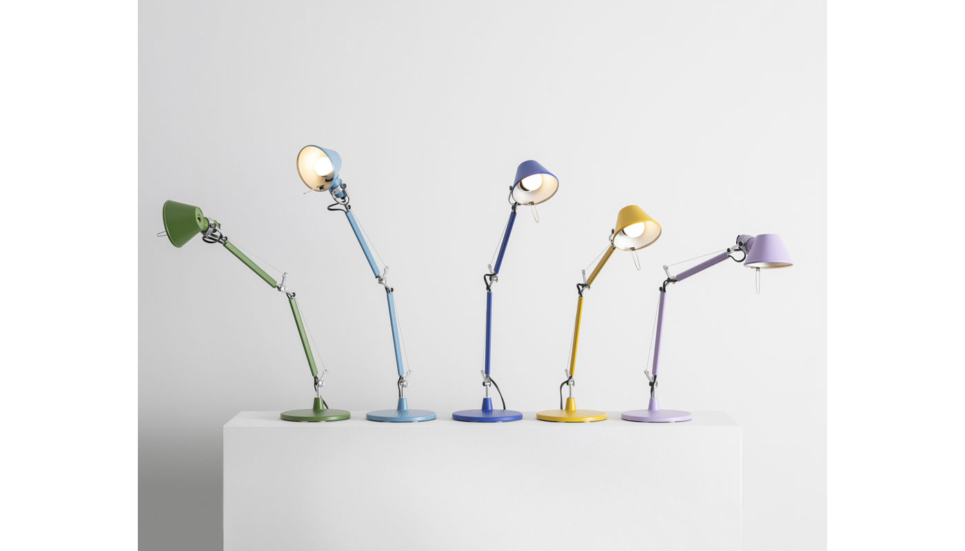 "No desk lamp should make you use two hands to position it." Michele De Lucchi A study in balance and movement, the Tolomeo table lamp is designed for a fully adjustable direction of light. Created for Artemide in 1987 by Michele De Lucchi and Giancarlo Fassina, Tolomeo has become an icon almost 30 years after its birth. Now available with integrated LED light source, model variations include an incorporated dimmer switch on the head, a motion sensor which uses passive infrared technology for energy conservation, and/or Tunable White LED technology allowing for varied intensities and color temperatures to be obtained. Manufactured by Artemide.