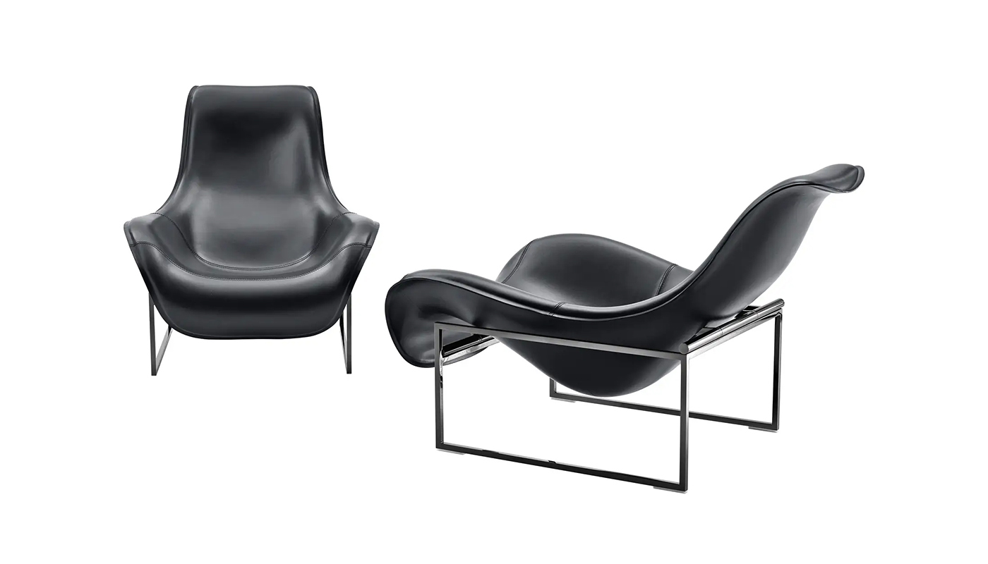 A comfortable hollow shape, in two sizes, that stands on a series of bases that create the overall character. The combination of these elements produces a family of armchairs with strong personality. At the origin of all of them, a long experimentation centered on the production technology of thermoformed leather, starting from a plastic shell that is inserted into a mold for the cold foaming of polyurethane, with the result of obtaining elasticity and comfort. Manufactured by B&B Italia.