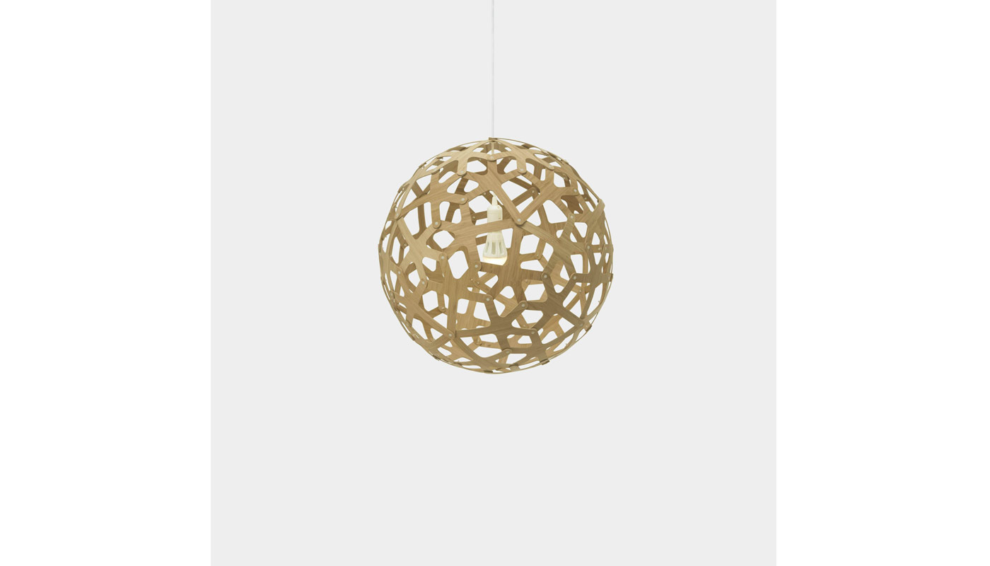 Trubridge describes this suspension light as a "form based on the structure of a geometric polyhedron." The Coral light is constructed from a single repetitious shape made of untreated bamboo ply. It is available in a variety of finishes and color options. The Coral 400 suspension light ships as a flatpack with assembly required. For an upcharge, the light can be shipped fully assembled or in custom colors. Contact Switch Modern at info@switchmodern.com or 404-605-0196 for more information. UL approved components. Manufactured by David Trubridge Design.