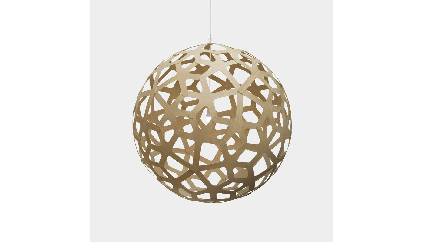 Trubridge describes this suspension light as a "form based on the structure of a geometric polyhedron." The Coral light is constructed from a single repetitious shape made of untreated bamboo ply. It is available in a variety of finishes and color options. The Coral 1200 suspension light ships as a flatpack with assembly required. For an upcharge, the light can be shipped fully assembled or in custom colors. Contact Switch Modern at info@switchmodern.com or 404-605-0196 for more information. UL approved components. Manufactured by David Trubridge Design.
