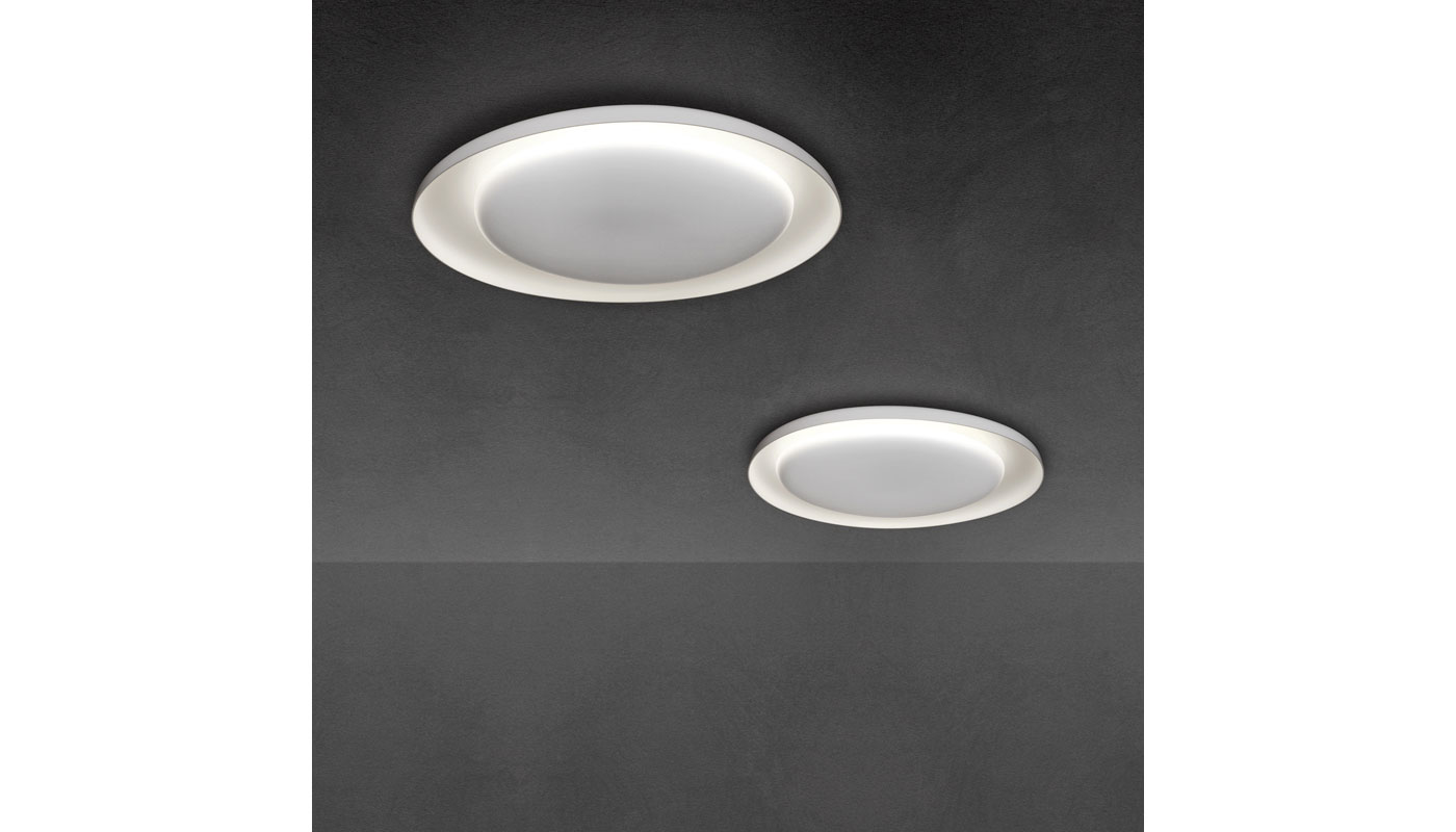 The Bahia light has a seductive form that recalls the aerial vision of an archipelago, with radiating light that subtly emphasizes its topographic nature. In the mini version the largest disc has been removed. The LED version is the natural development of Bahia. Foscarini has developed and engineered the LEDs in this model and managed to improve the magic of the light. ETL certified. Manufactured by Foscarini.