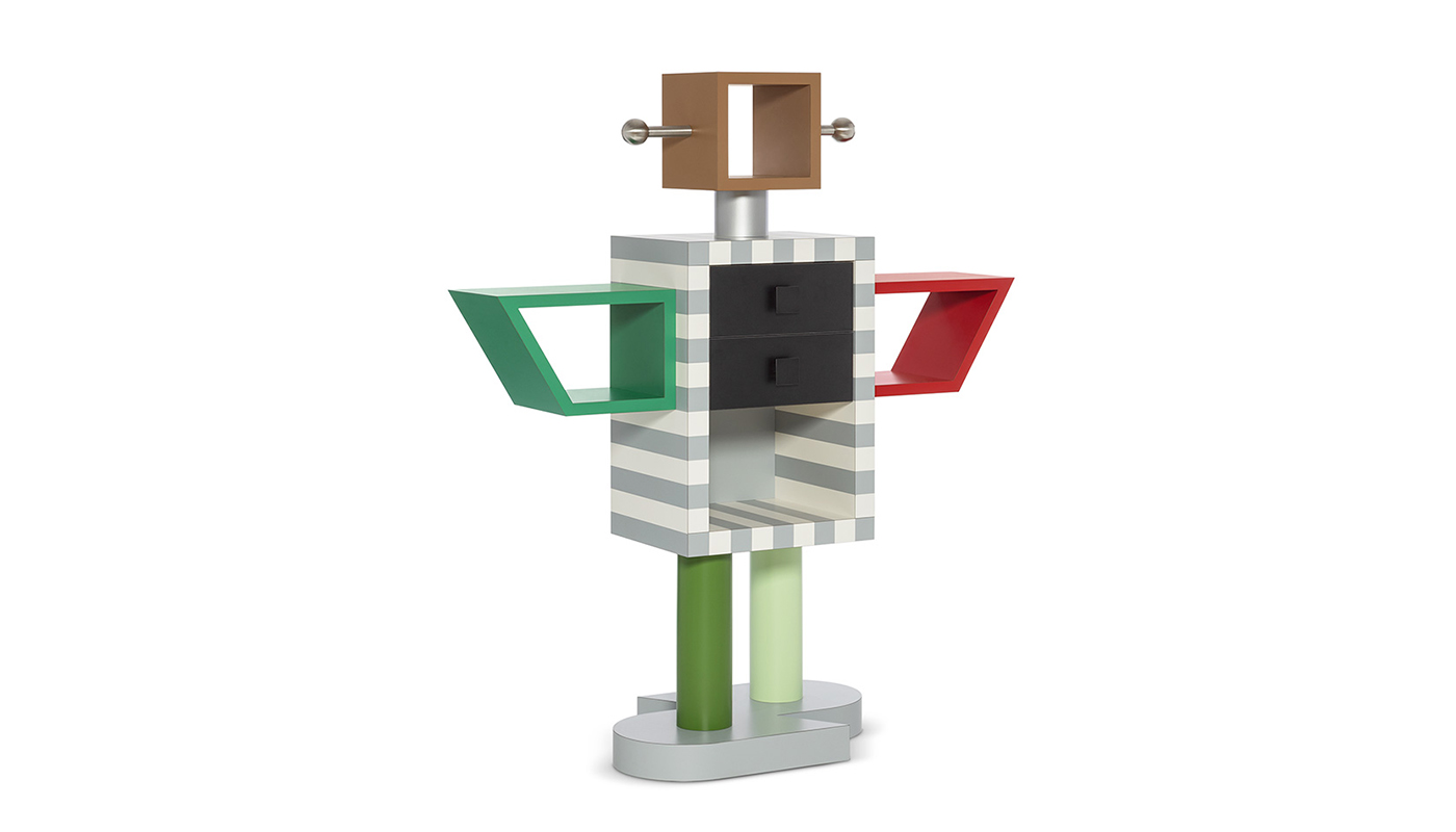 Ginza by Masanori Umeda amazes us with its form that references the world of robots in Japanese science fiction, legendary in the 1970s and 1980s and now part of our collective imagination. Undoubtedly one of the most iconic creations, Ginza, which ironically takes its name from one of the most glamorous districts of Tokyo, fully embodies the exuberant spirit of Memphis. Manufactured by Memphis Milano.