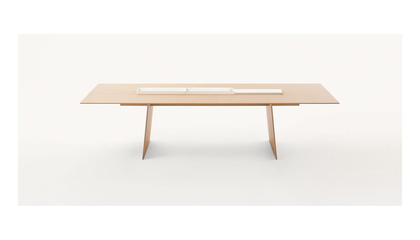 The Kanji dining table is part of the Paola Lenti Indoor Collection. The top features a central section divided into independent and removable elements. It is possible to replace the desired number of such elements with a cutting board, made of either stoneware, Luni marble, or with gloss-varnished metal trays. The series Kanji also includes a side table which is available in the same finishings. Manufactured by Paola Lenti.