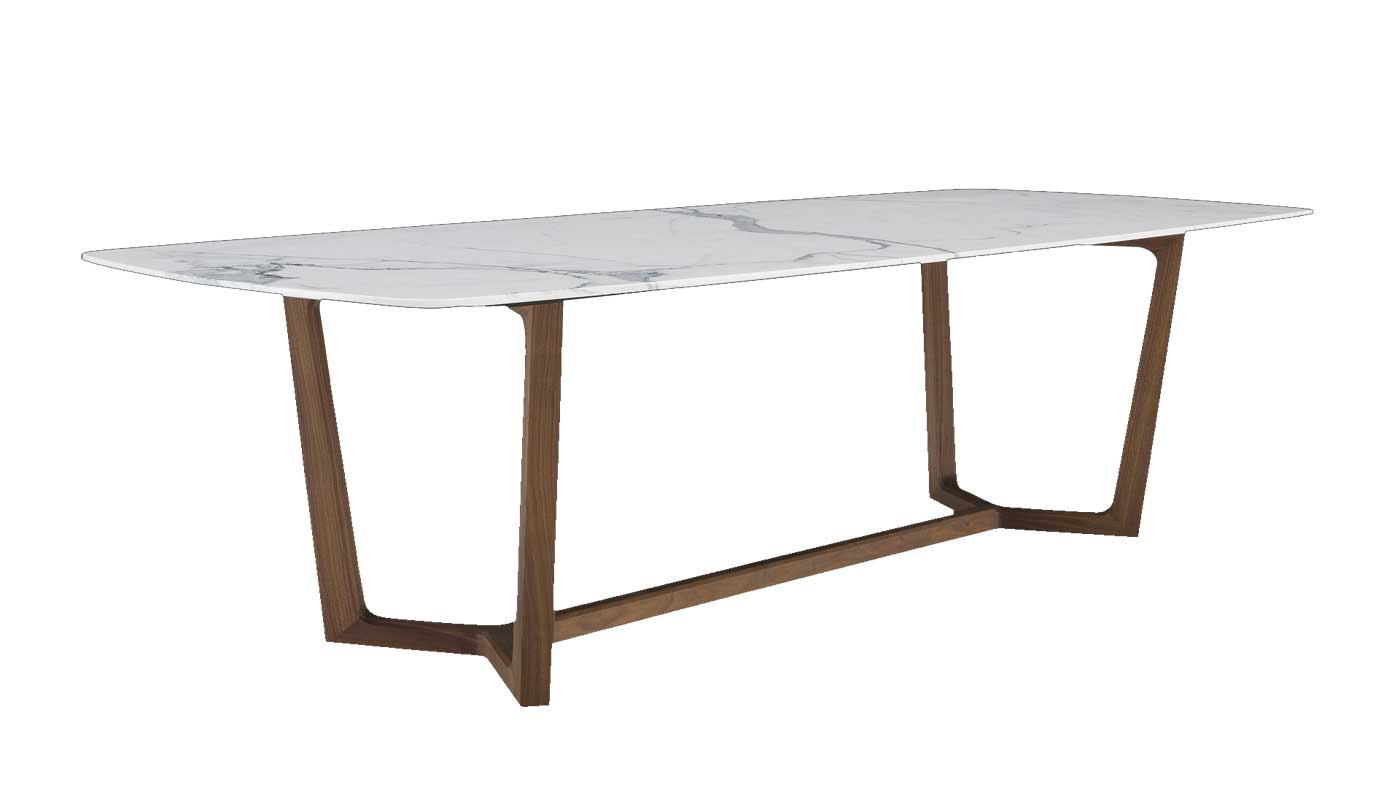 Popular and visually engaging, the Concorde table is available in three rectangular sizes as well as two round sizes. The table base is created in a choice of several different woods; table tops are available in the same matching woods or marble. Manufactured by Poliform.