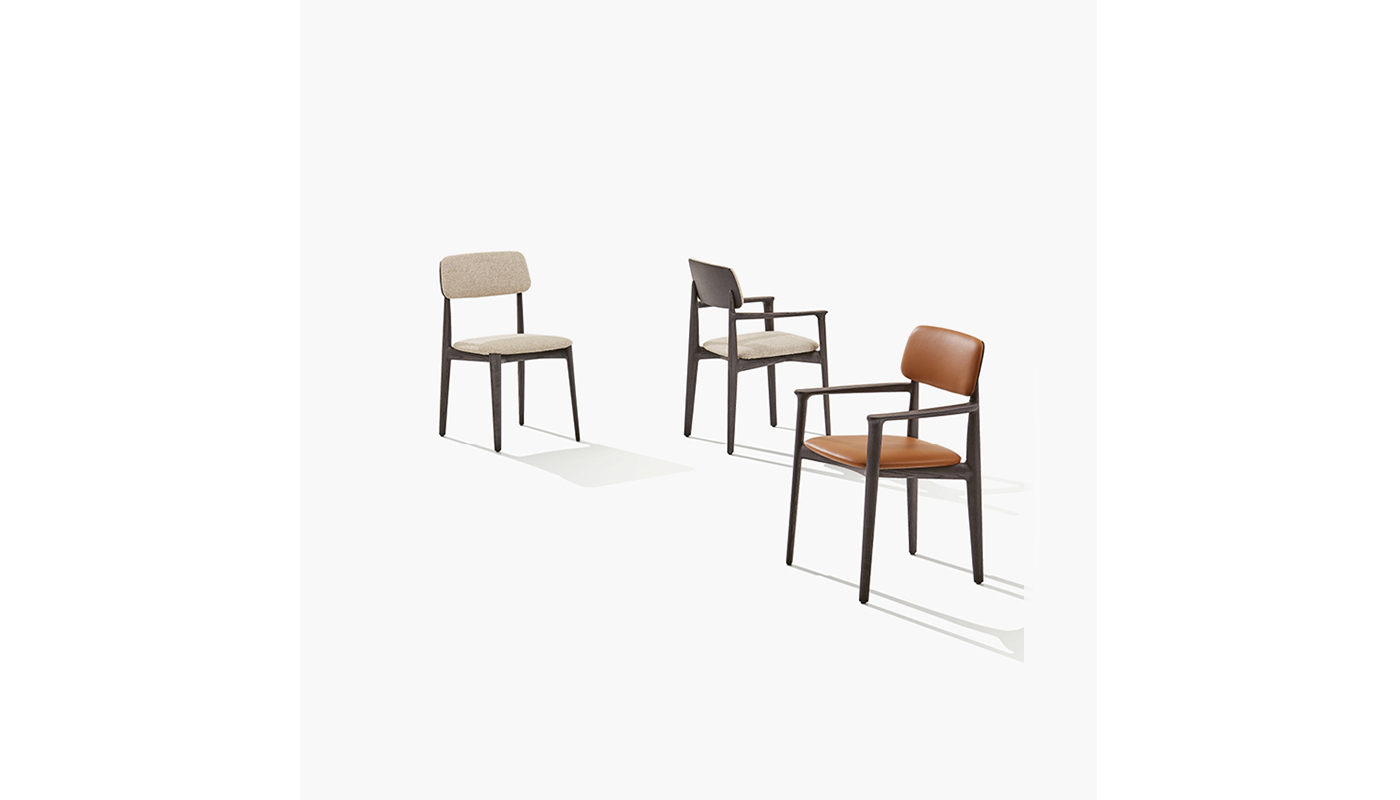 Light and elegant, behind its apparent simplicity this chair hides an intricate crafting of solid wood. Manufactured by Poliform.