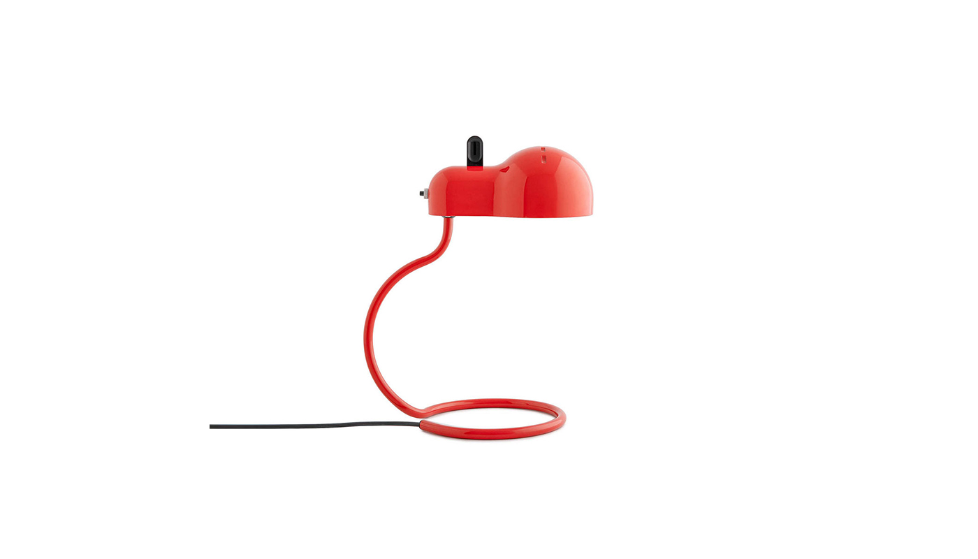 Minitopo is a charming thing of automotive inspiration: the slits on the shell recall the air intakes of 1960s sports cars, while the shape of the lampshade matches to the envelope of the classic E27 bulb placed inside, like a hood on the engine below. The resulting shape is a reminiscent of a mouse, hence the ironic name. The light is freely directed by the black handle, the tail, placed on the reflector. Adjustable metal head painted in glossy white, black, red, green, chrome finishes with supporting stem in chromed metal. Special editions: Chrome Special (total chrome), Gold Special (head in galvanic gold and matte black stem), Iconic Red (total Iconic Red). Head interior painted white. Grip in black thermal insulating material. Manufactured by Interlux.