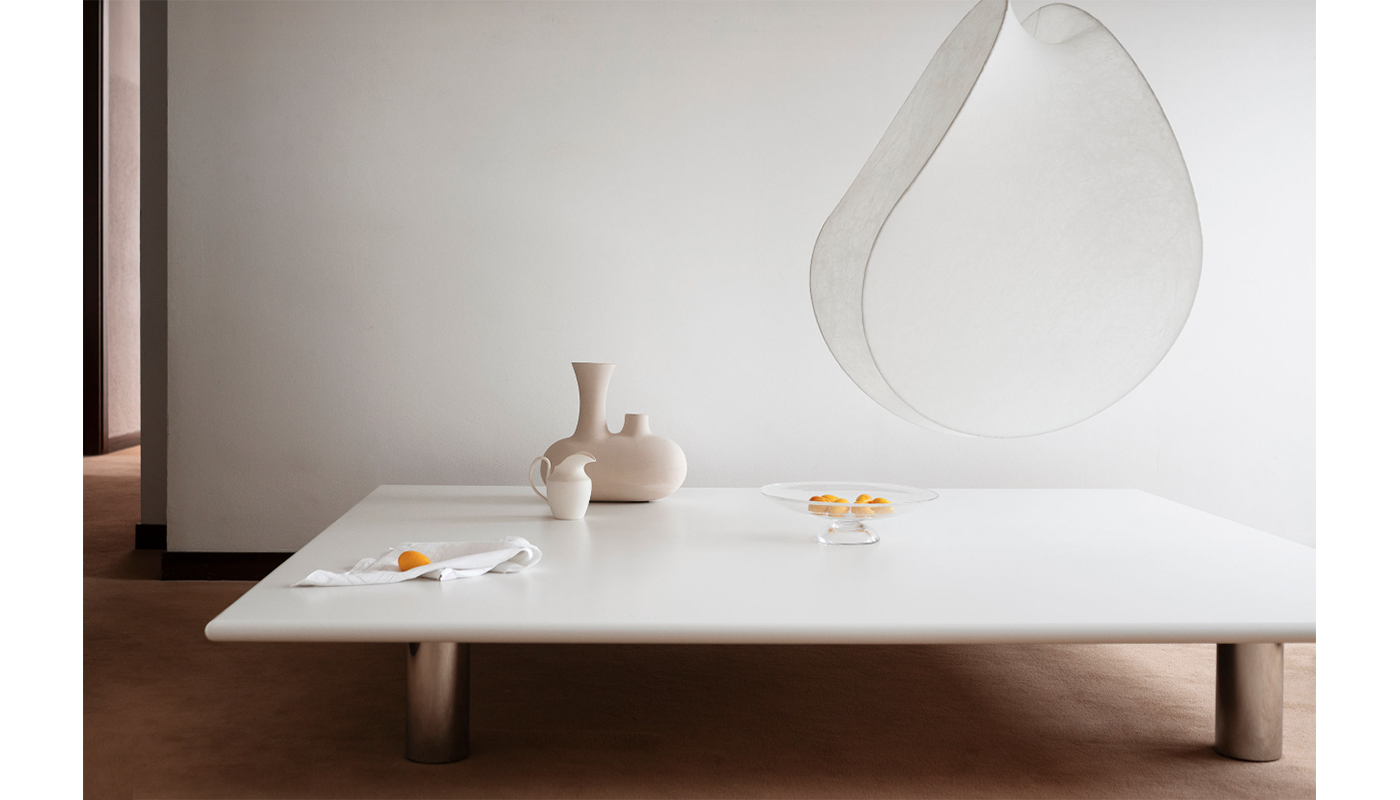 The Tako low table embodies the multifunctional versatility of contemporary furniture, an essential and welcoming element that helps make the home a space easily reconfigurable according to the needs of the moment. Designed in the 1970s by architect and designer Cini Boeri, Tako "is not a piece of furniture, but a surface to use" following the ethical approach of a design in which objects should encourage autonomy and be flexible "to live as happily as possible." Four tubular chrome steel legs support a large surface -- available in two sizes -- which, in the mind of the Milanese architect, is a natural continuation of the home floor, accompanying the small domestic rituals that are so dear to her. Tako thus becomes a practical surface for everyday items and an extension of the sofa for relaxing the feet. The low height of the table, which reflects Cini Boeri's thoughts on oriental convivial practices, stimulates conversation and social interaction, highlighting her vision of the home as a space that can be easily reconfigured according to the needs of the inhabitant. Today, Tako is reissued by Tacchini in the original version with a white lacquered wood top on four chrome steel cylinders, and in a new finish with a Ceppo di Crema marble top -- a historic stone used in many Milanese façades -- paired with the original chrome steel legs. Manufactured by Tacchini.